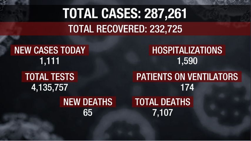 WEEKEND: The state is reporting 3,738 new cases of coronavirus over the weekend, bringing the total to 286,145 statewide. 48 new deaths were also reported bringing that total to 7,042.