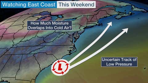 That low will then track northeastward near or well off the East Coast through Sunday night. What's uncertain for pinpointing specific impacts in the mid-Atlantic and Northeast this far out is how close that low will track in relation to the coast.