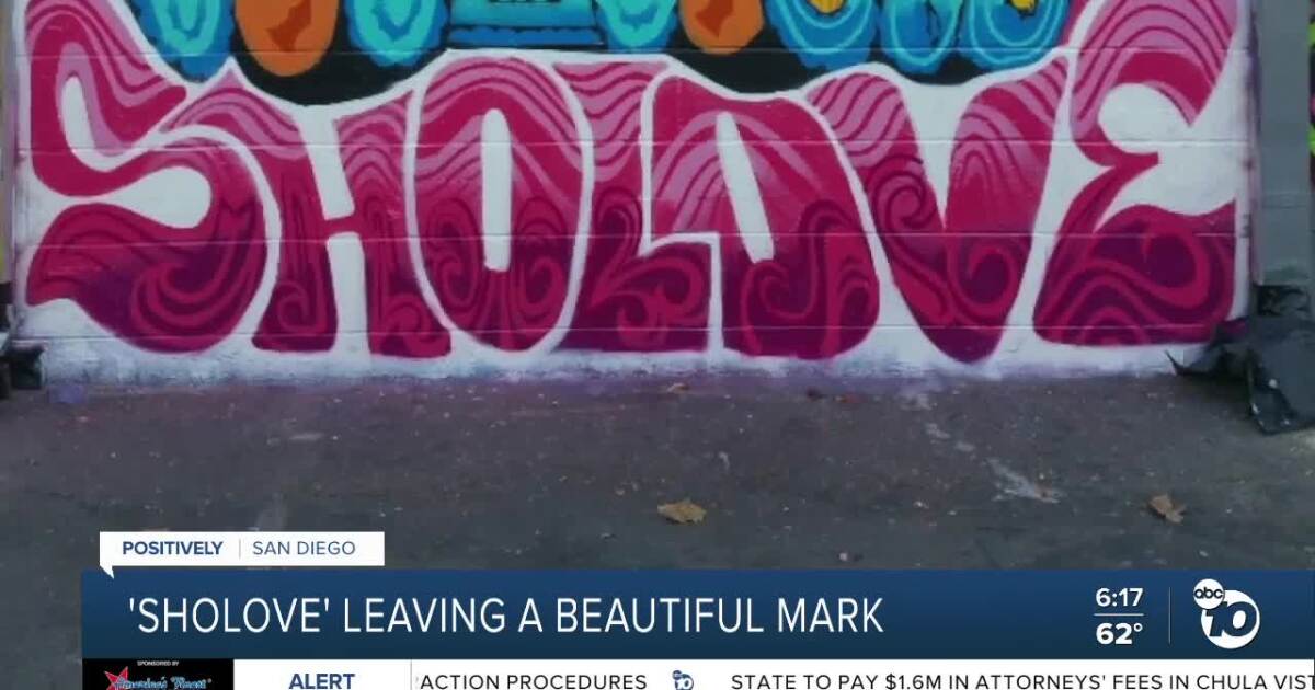 SAN DIEGO — SAN DIEGO (KGTV) -- “ShoLove” is the moniker and driving force for muralist Erick Delarosa, who said he gets paid for his work in smiles.